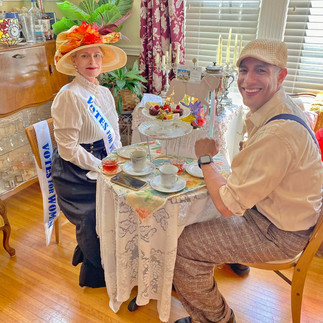 This past month we also hosted a themed private party! Did you know you can theme your private party? We have add-on packages if you would like to add a theme to your special occasion. We offer character add-ons, decoration add-ons, as well as music and entertainment add-ons for your tea party experience. Our most popular add-ons being having your tea party hosted by Lucy & Desi, Professor Dumbledore and Professor Trelawney, or Alice and Hatter. We hosted a Harry Potter themed private party birthday party. Hosted by Professors Dumbledore and Trelawney, the parents of the birthday girl even got in on the fun dressing as Professor McGonagall and Hagrid! We played pin the nose on Dumbledore, Would You Rather Harry Potter style, and had a hat sorting.