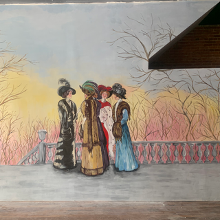 Voila! Edwardian lady mural at the soon to be bourbon lounge in Salem, Indiana is complete. This one took 23 hours and 4 days. AND looks like it won’t be the last one! Next up, a Salem streetscape scene in another area of the lounge. Bring on more paint days! ❤️